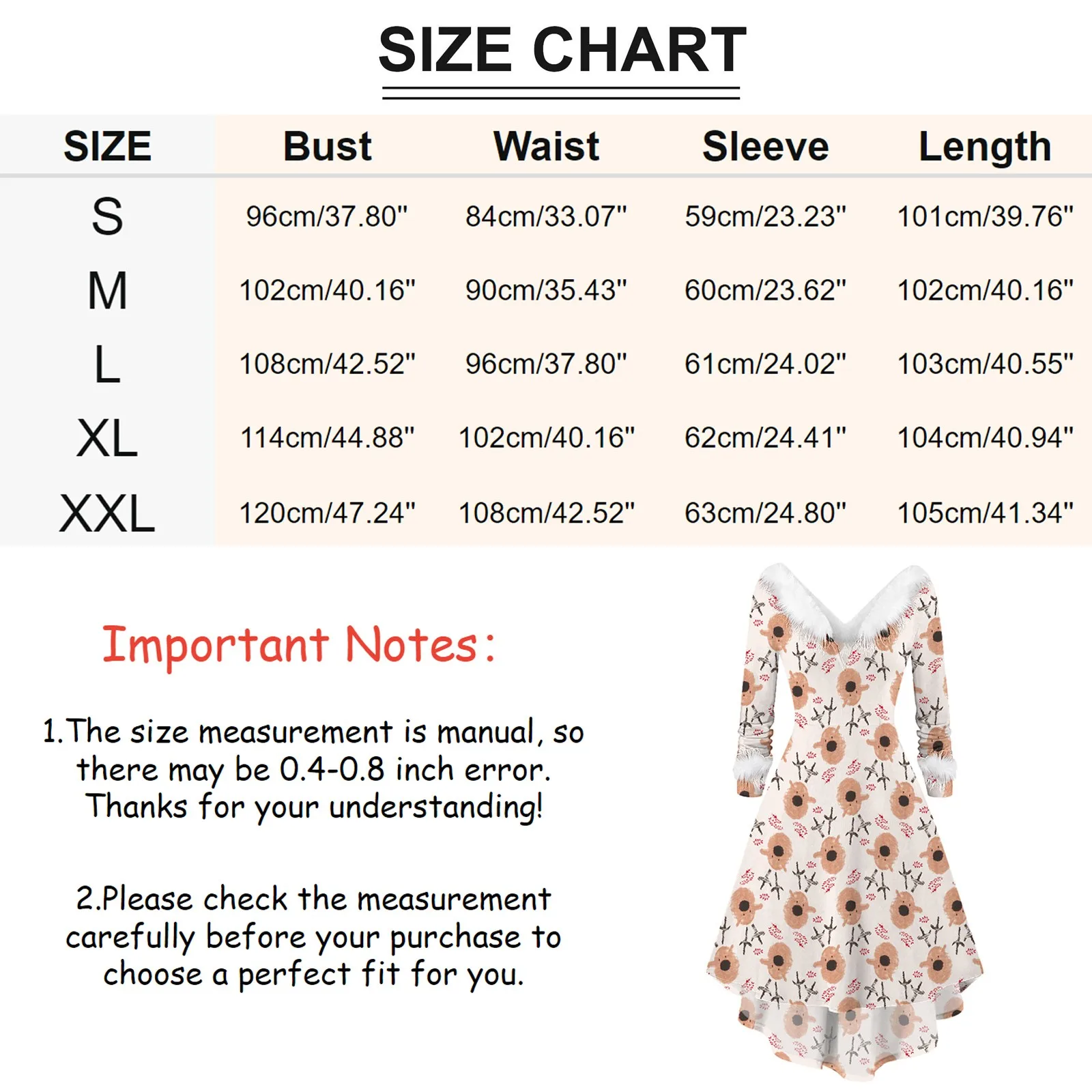 Plush Collar & V-Neck: Designed with a soft plush collar and flattering V-neckline, this dress offers both warmth and a stylish festive touch.